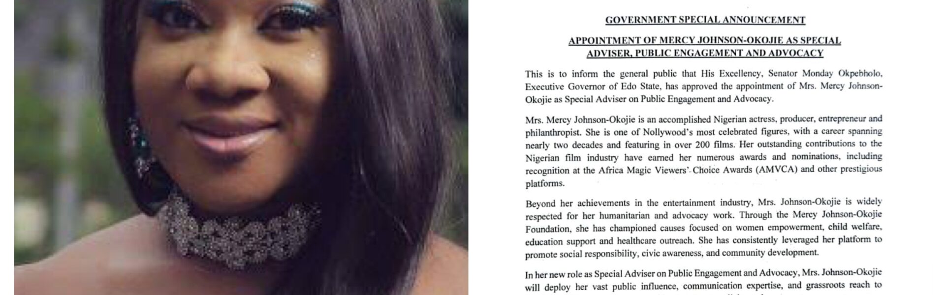 Benin City- The Governor of Edo State, Monday Okpebholo, has approved the appointment of Mrs. Mercy Johnson-Okojie as Special Adviser on Public Engagement and Advocacy.